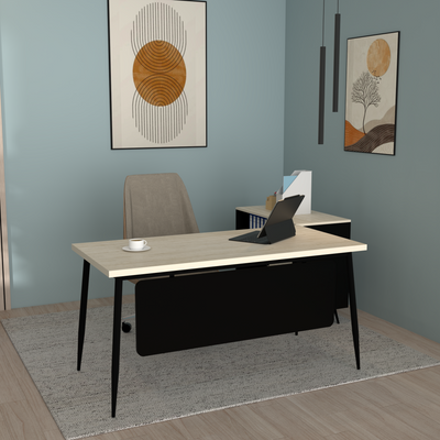 Enhance your executive workspace with the Creek Manager Office Table, a refined creation from OFFICITY.pk that blends modern design, durability, and professional elegance. With its sophisticated Off White tactile veneer paired with a black melamine finish, this table delivers a clean, premium, and commanding presence in any office environment.