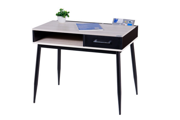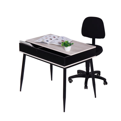 The table features a smart storage layout including a front drawer and dual book-keeping compartments, allowing you to keep your essentials organized and easily accessible. Built with a strong MS metal frame and premium hardware, it ensures long-term durability and stability.