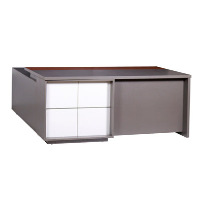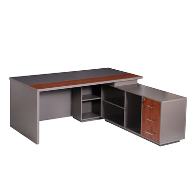 The integrated side storage rack provides ample organization space with drawers, shelving, and additional documentation storage, ensuring a clutter-free and efficient workspace. Built with strong materials and premium fittings, it guarantees long-lasting performance in demanding office settings.